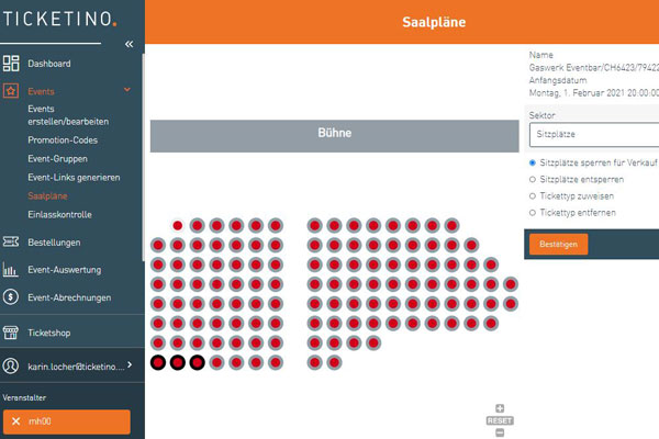 Reservationen bzw. Zahlung an Abendkasse sind nur nach Absprache mit TICKETINO möglich.