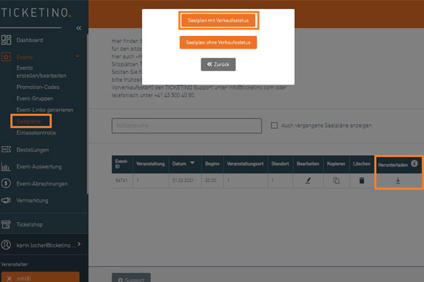 3) Ticketliste herunterladen