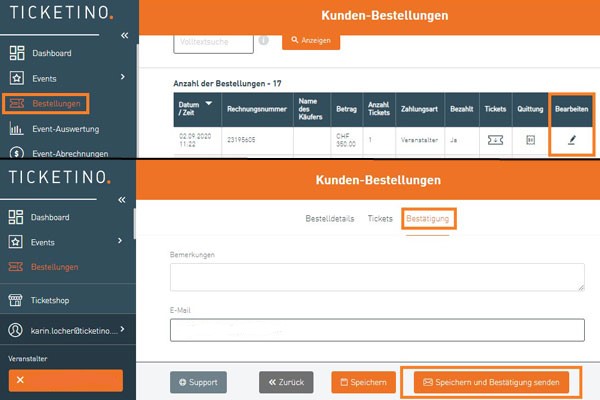 Sie weisen den Kunden auf den Zahlstatus hin und fordern ihn auf, die Zahlung nach der Veranstaltung nachzuholen oder TICKETINO den Zahlungsbeleg zuzusenden (unter Umständen konnte die Überweisung nicht korrekt verbucht werden).