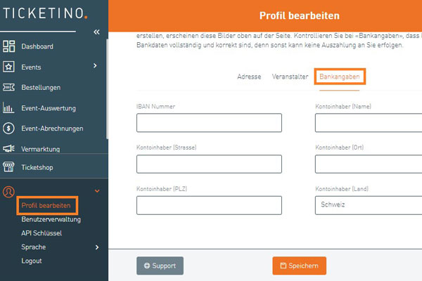 Damit die Auszahlung schnell und reibungslos verläuft, müssen die Bankangaben im Cockpit unter „Profil bearbeiten“ -> "Bankangaben" erfasst werden. Eine IBAN-Nummer sowie Name und Anschrift des Kontoinhabers genügen.